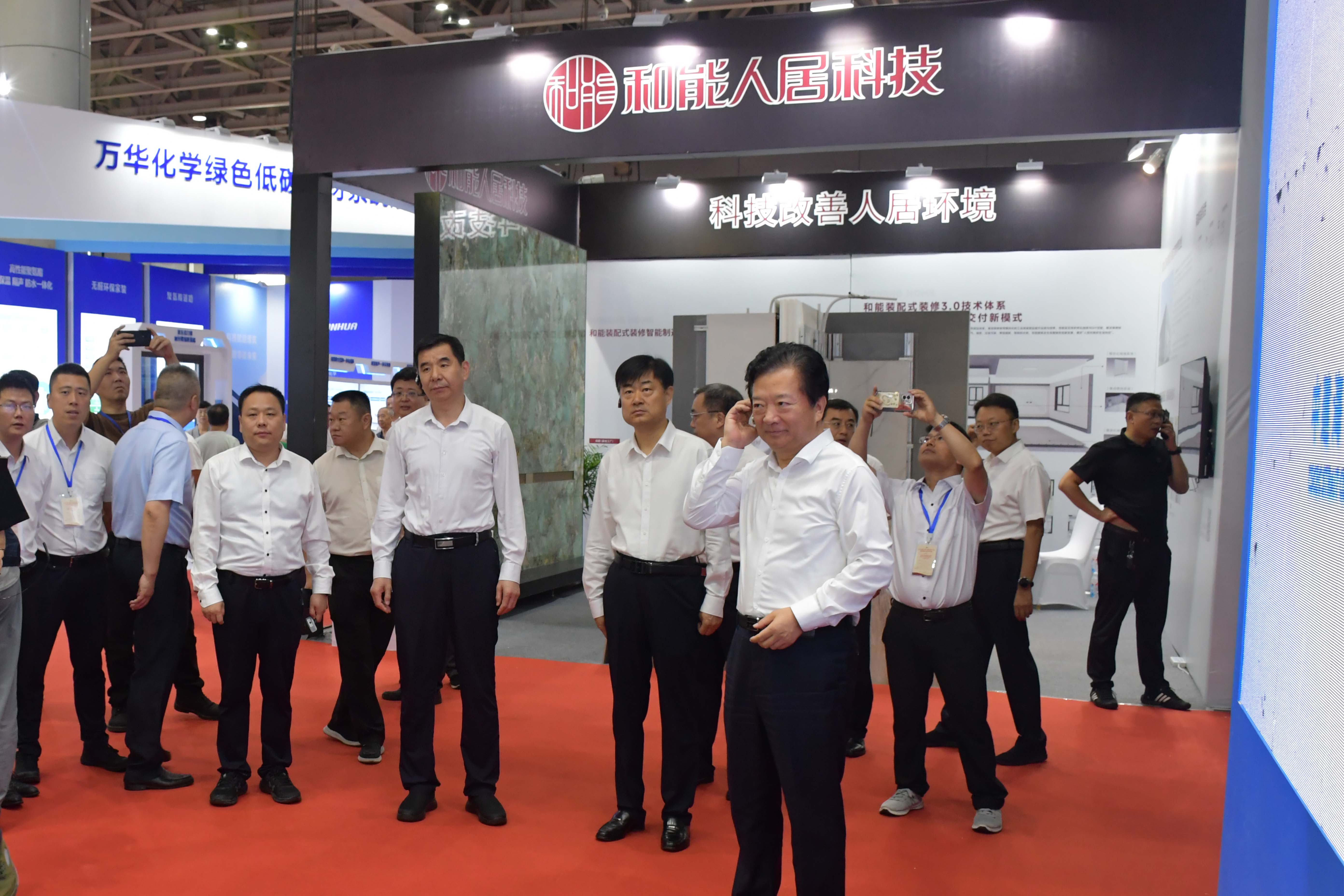 6月20日,2025山東省夏季購房節,中國(煙臺)住博會暨高品質住宅發展大會在煙臺國際博覽中心啟幕。省政府副秘書長劉斯杰,中國房地產業協會會長陳宜明,省住房城鄉建設廳黨組書記任海濤,煙臺市委副書記、市長鄭德雁,省住房城鄉建設廳黨組成員、副廳長麻鵬飛等領導蒞臨和能人居綠色科技裝配式內裝展廳,和能人居科技華北區域總經理吳丹等集團領導全程接待講解。蒞臨展位的一行領導對綠色科技工業化內裝產品的精度、效果、品質予以肯定,并指出煙臺高品質好房子建設需要綠色新技術。