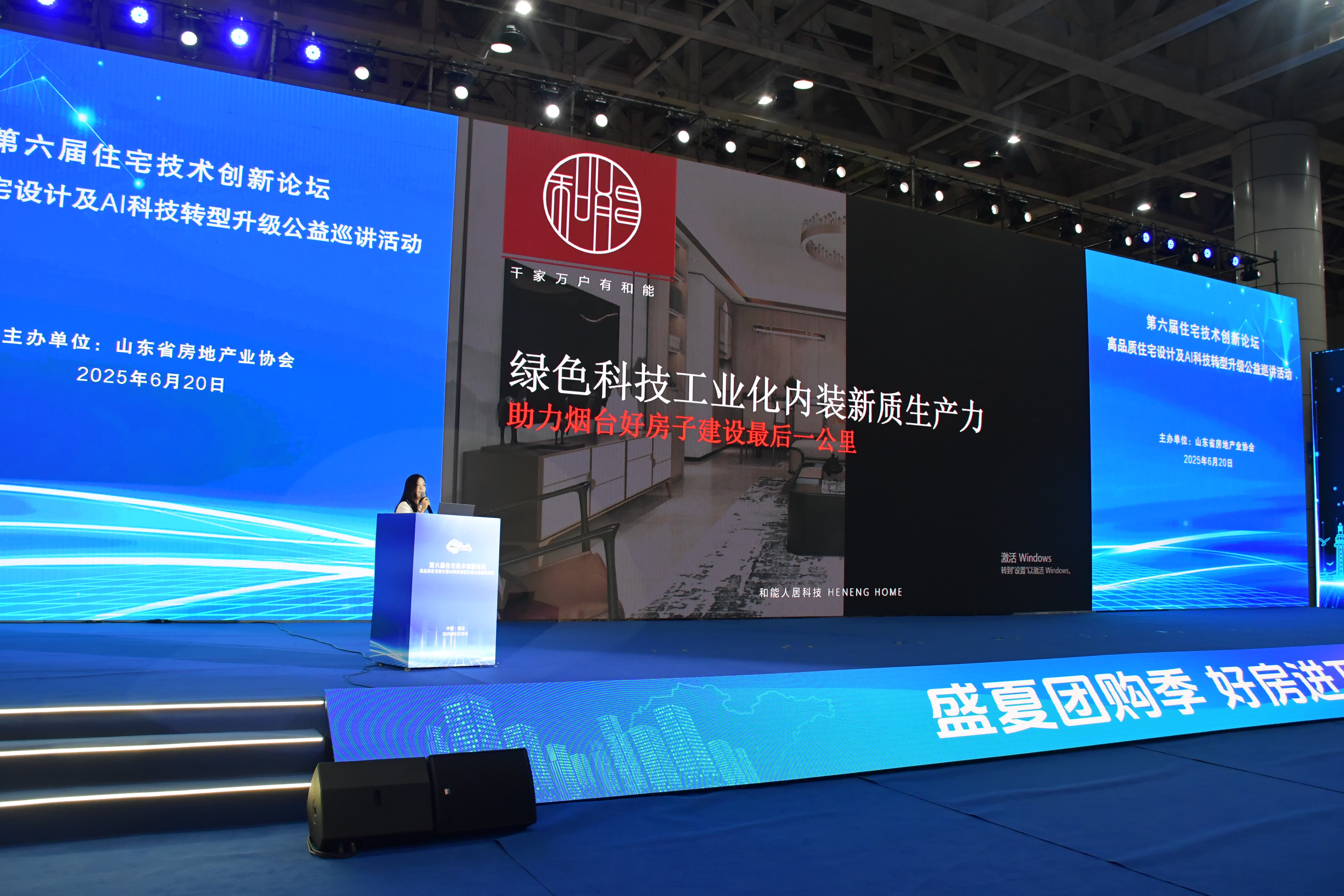 和能人居科技華北區域總經理吳丹受邀出席論壇,現場分享了“綠色科技工業化內裝新質生產力助力煙臺好房子建設最后一公里”的主題演講。她向現場嘉賓介紹了和能裝配式裝修技術,以及三大科技創新,同時分享了和能綠色裝修技術和B+C新交付模式助力新房變好房理念。